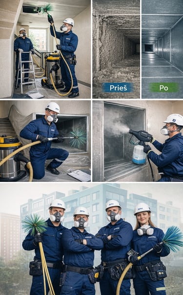 Valome ir dezinfekuojame daugiabučių vėdinimo sistemas, užtikrindami švarą ir saugumą.